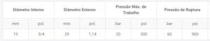 Reforço: Trançado têxtil de alta resistência;